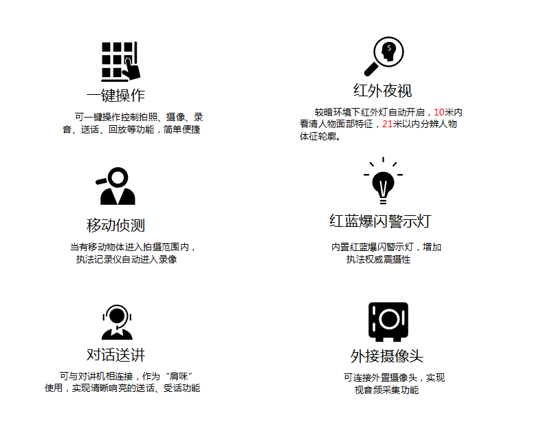 快盈welcome快盈DSJ-200F 执法仪(法院/政府/城管)拍摄像素高达5000万,广角镜头137,拍摄画面精细而全面,大容量电池支持陆续在工作12小时不断电